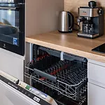 Geniet van een complete keuken in het appartement met koffie- en theefaciliteiten, een koelkast, keukengerei voor uw gemak.